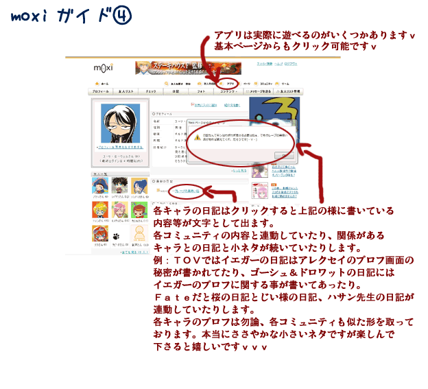 説明に書いている通り、日記等は連動している場合があるので、関係ありそうなキャラのページの日記等をクリックして読んでみて下さいねv