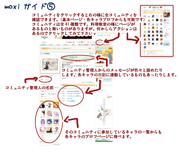 (キャラプロフからはそのキャラが加入しているコミュニティへ飛ぶか、全コミュニティが載っているページに飛べます)