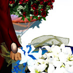 3/1のメモに描いた例のバケ百合を小さくしてみた。 あまり小さくなってないのは気のせい。目の錯覚デスヨ。 でも『ちょっと寂しくね?』と無駄に小物描きたがるスキルが発動して、元々描いてたバラ花束の本数をガッツリ増やす暴挙に出た。
